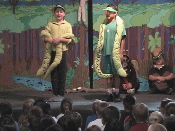 Rumpus in the Rain ForestHere are photos and video clips from the play put on my daughter's third-grade class, Rumpus in the Rain Forest, performed June 6, 2002. Click on the picture to see full size. VideoDon't Dither (The Boa Song) -- 1.8 MB streaming Windows Media File Requires Microsoft Media Player LinksBad Wolf Press (creators of Rumpus in the Rain Forest) |